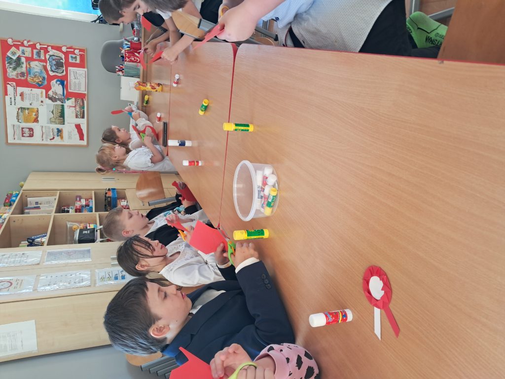 Dzieci były bardzo dumne, gdy zobaczyły jak z prostych materiałów powstały eleganckie patriotyczne ozdoby.