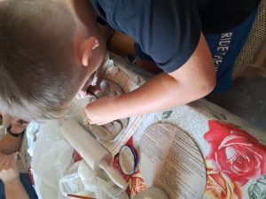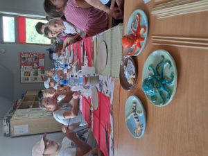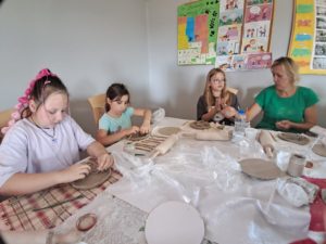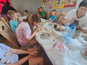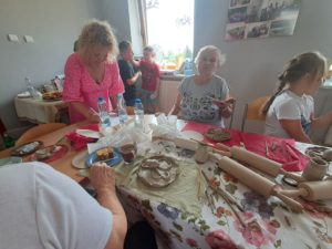 W dniu 7 lipca 2025 r. w Placówce Wsparcia Dziennego w Sukmaniu odbyło się drugie działanie w ramach projektu socjalnego „Kawa dla Babci i Dziadka” tj. warsztaty ceramiczne, w których uczestniczyli Seniorzy oraz dzieci z PWD.