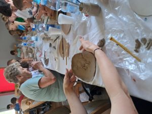 Zajęcia przeprowadził Powiatowy Zakład Aktywności Zawodowej w Łysej Górze, zapewniając profesjonalnych instruktorów, materiały i inspirującą atmosferę do wspólnej twórczości. Uczestnicy, pracując w grupach międzypokoleniowych, z zaangażowaniem tworzyli wyjątkowe prace z gliny, rozwijając swoje zdolności manualne, kreatywność i wzajemne relacje.