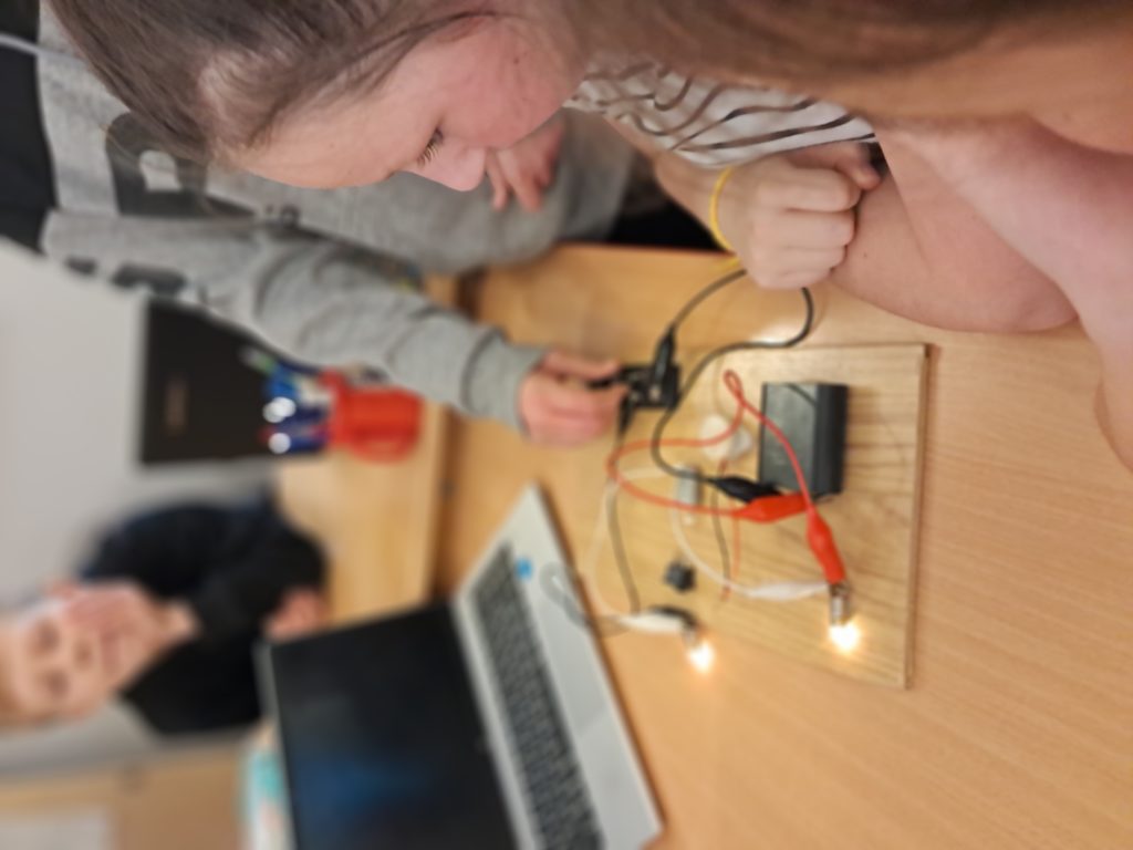 Pod okiem prowadzącego samodzielnie sprawdzały, które połączenie działa, a które nie. Największą frajdę sprawiało im odkrywanie momentu, w którym żarówka nagle rozbłyskała.