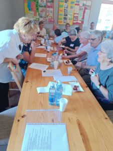 Integracyjne spotkanie z zabawami i rozmowami, które poprowadziła Maria Wantuch – wykładowczyni Akademii Tarnowskiej, pedagog i aktywna uczestniczka Uniwersytetu Trzeciego Wieku.