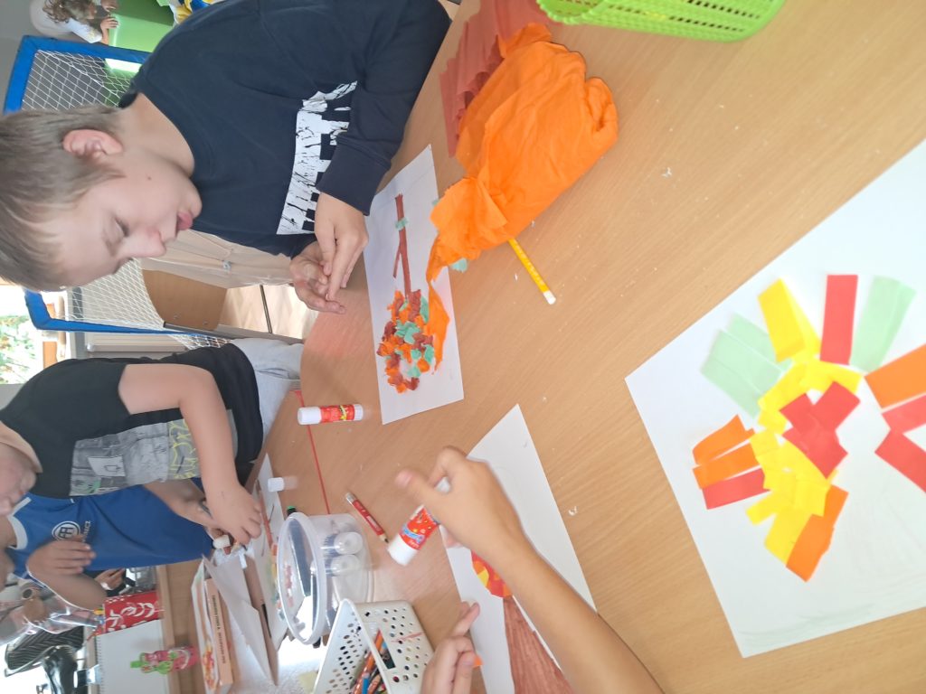 Zajęcia plastyczne pt. „Jesienne drzewa” miały na celu rozwijanie kreatywności oraz motoryki małej dzieci. Uczestnicy poznali charakterystyczne cechy jesieni, a następnie wykonali prace plastyczne przedstawiające drzewa w jesiennych barwach. Dzieci doskonaliły umiejętność obserwacji przyrody i wyrażania jej poprzez sztukę. Zajęcia przebiegły w miłej i twórczej atmosferze.